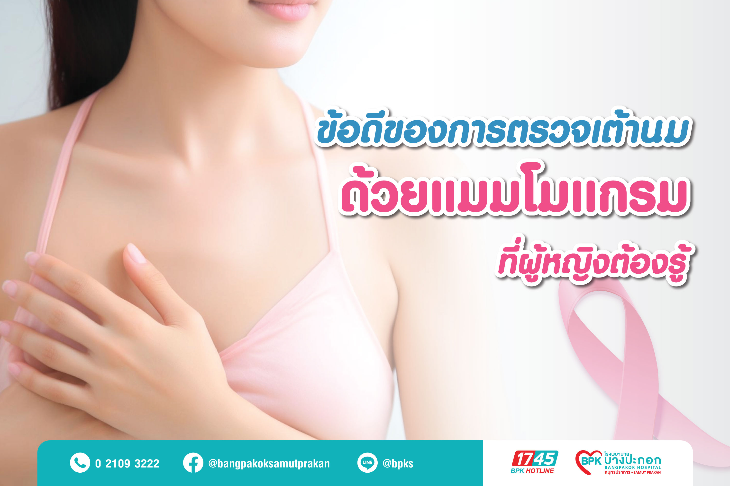 มะเร็งเต้านมในระยะเริ่มต้นมักไม่แสดงอาการใดๆ การตรวจแมมโมแกรมจึงมีประโยชน์อย่างมาก เพราะช่วยตรวจพบได้ตั้งแต่ยังไม่คลำเจอหรือไม่มีอาการผิดปกติ ซึ่งหากรักษาตั้งแต่ต้น โอกาสหายขาดมีสูงถึงกว่า 90% - หารอยโรคขนาดเล็กได้ แม้ไม่แสดงอาการ