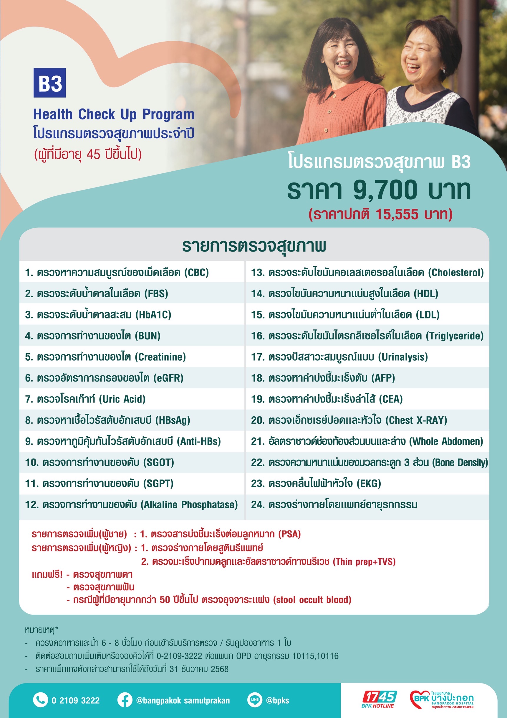 โปรแกรมตรวจสุขภาพประจำปี B3 (อายุ 45 ปีขึ้นไป)
