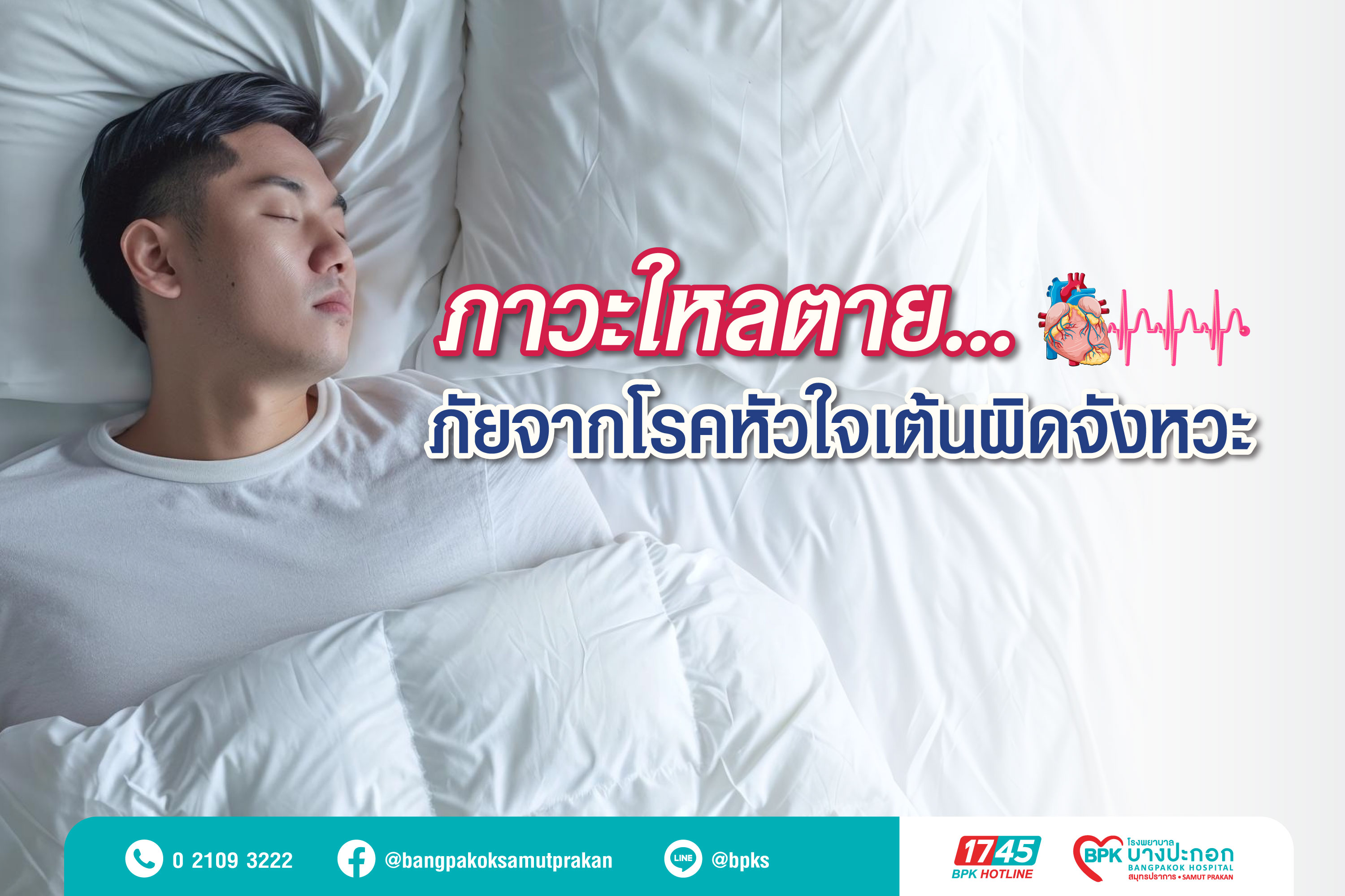 ในยุคที่การใช้ชีวิตเร่งรีบขึ้นเรื่อยๆ หลายคนต้องทำงานหนัก พักผ่อนน้อย และมีความเครียดสะสมจนชิน ร่างกายที่เหนื่อยล้าอาจถูกตีความว่า “แค่พักผ่อนน้อย” แต่จริงๆ แล้วอาจเป็นสัญญาณเตือนของปัญหาระบบไฟฟ้าหัวใจที่กำลังแปรปรวนโดยไม่รู้ตัว สิ่งที่น่ากังวลคือ ภาวะนี้อาจนำไปสู่ “ภาวะใหลตาย” ซึ่งเป็นหนึ่งในสาเหตุการเสียชีวิตแบบเฉียบพลัน และมักเกิดขึ้นกับคนที่ดูเหมือนสุขภาพดี ไม่มีโรคประจำตัว