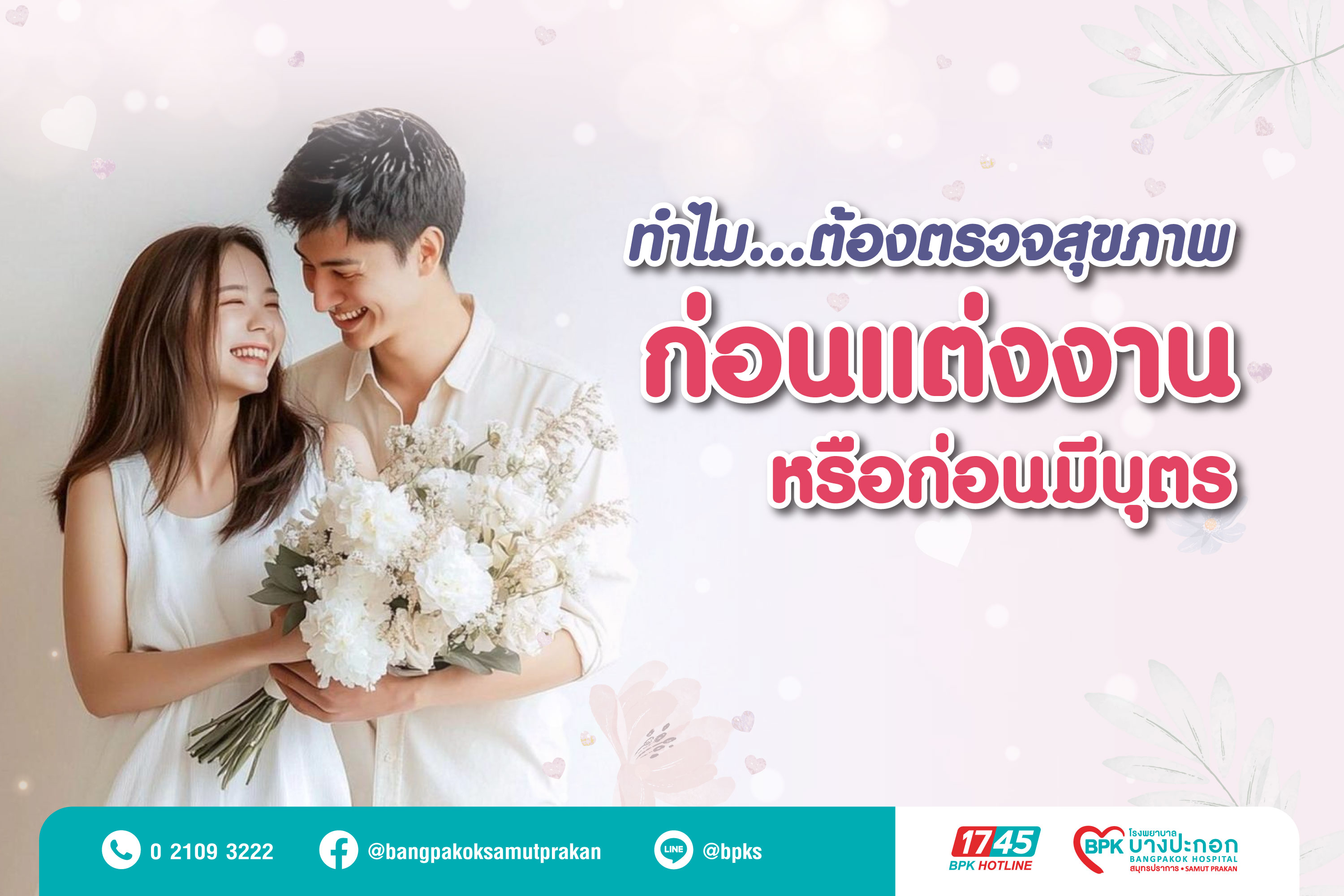 การตรวจสุขภาพก่อนแต่งงาน เป็นการเริ่มต้นชีวิตคู่ด้วยความรับผิดชอบและความใส่ใจซึ่งกันและกัน ไม่ใช่เพียงเพื่อค้นหาความผิดปกติ แต่เพื่อวางแผนอนาคตอย่างมั่นใจ ทั้งในด้านสุขภาพ การมีบุตร และการใช้ชีวิตร่วมกันในระยะยาว เพราะความพร้อมที่แท้จริง ไม่ได้อยู่แค่ในเรื่องของงานพิธีหรือการเงิน แต่รวมถึงความพร้อมด้านสุขภาพของทั้งสองคนด้วย