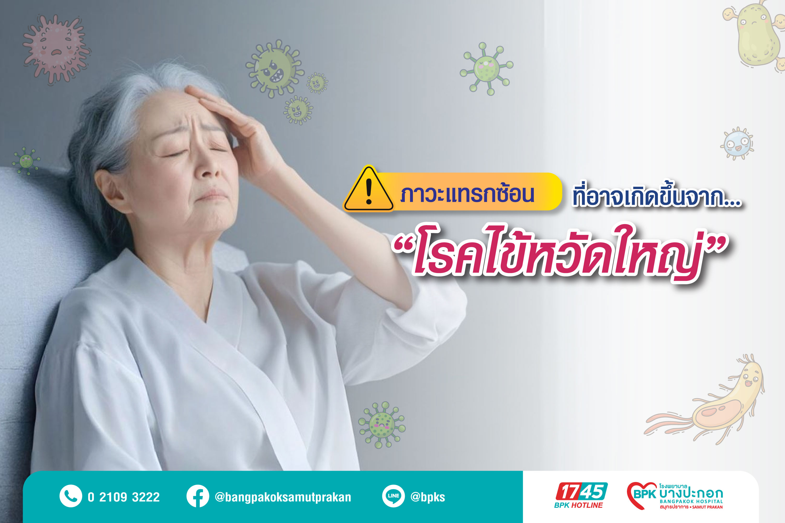 ไข้หวัดใหญ่ไม่ใช่เพียงโรคที่ทำให้มีไข้ ไอ หรือเจ็บคอเท่านั้น แต่สามารถนำไปสู่ภาวะแทรกซ้อนรุนแรงได้ทั้งในระบบประสาท ระบบหัวใจ ระบบหายใจ และการติดเชื้อแบคทีเรียแทรกซ้อนในอวัยวะอื่น การฉีดวัคซีนไข้หวัดใหญ่เป็นประจำทุกปีจึงเป็นวิธีป้องกันที่มีประสิทธิภาพ ช่วยลดโอกาสป่วยรุนแรง ลดการนอนโรงพยาบาล และลดความเสี่ยงต่อภาวะแทรกซ้อนที่อาจเป็นอันตรายถึงชีวิต