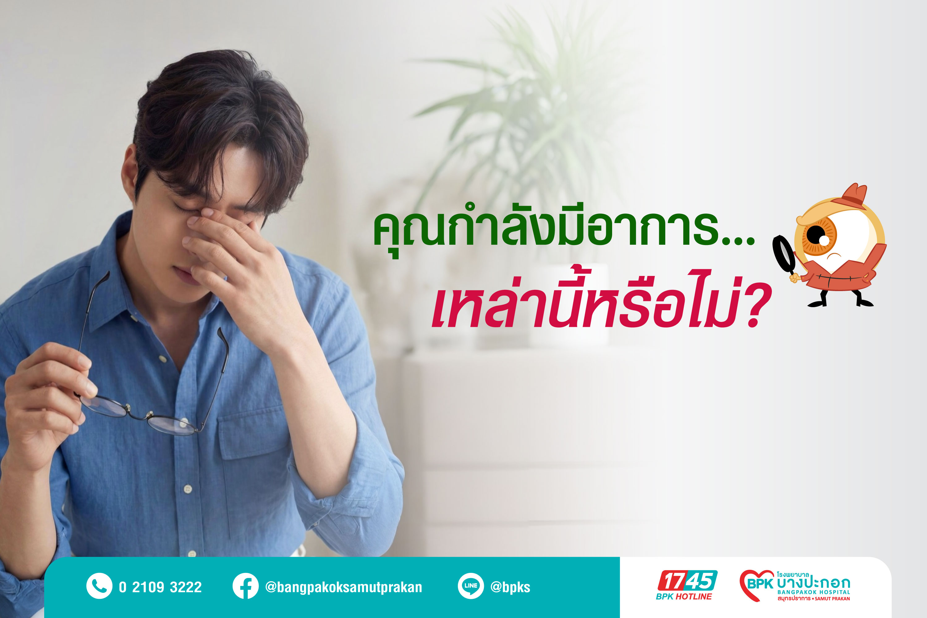 ในชีวิตประจำวัน หลายคนอาจเคยมีอาการตามัว มองไม่ชัด หรือแสบตาเล็กน้อย แล้วคิดว่าเป็นแค่เรื่องปกติ เช่น พักผ่อนน้อย ใช้สายตามาก หรืออายุมากขึ้น แต่ความจริงแล้ว “อาการเล็กๆ เหล่านี้” อาจเป็นสัญญาณเริ่มต้นของโรคตาที่สำคัญ เช่น ต้อกระจก หรือต้อหิน ซึ่งหากปล่อยทิ้งไว้ อาจลุกลามจนกระทบต่อการมองเห็นในระยะยาว หรือรุนแรงถึงขั้นสูญเสียการมองเห็นได้ ดังนั้น หากคุณกำลังมีอาการต่อไปนี้ ห้ามมองข้ามเด็ดขาด
