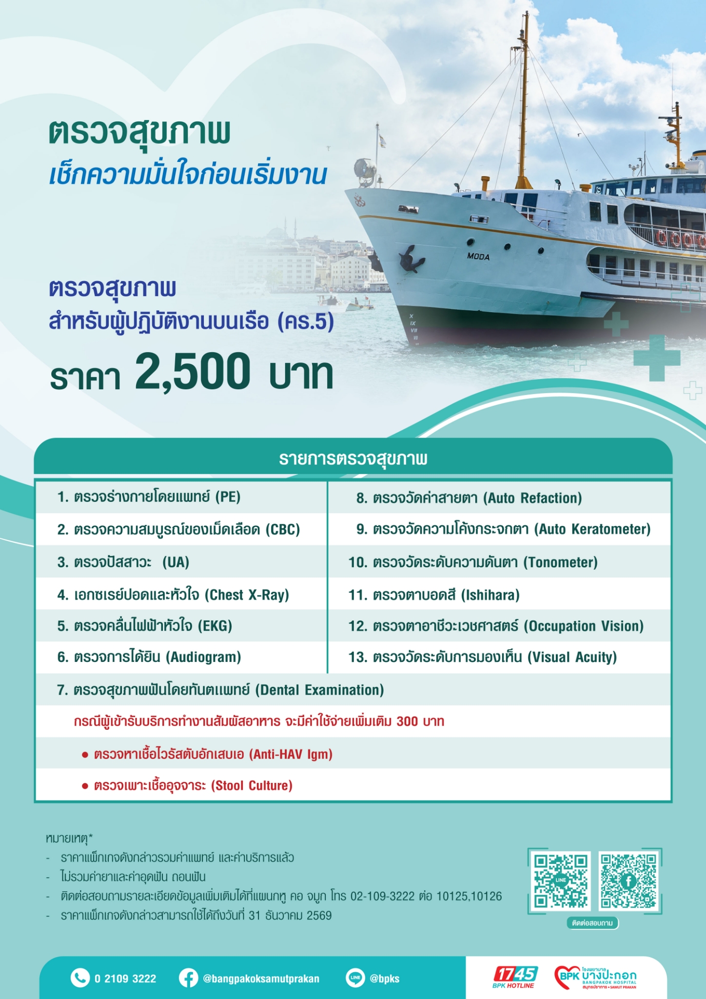 แพ็กเกจตรวจสุขภาพผู้ปฏิบัติงานบนเรือ (คร.5)