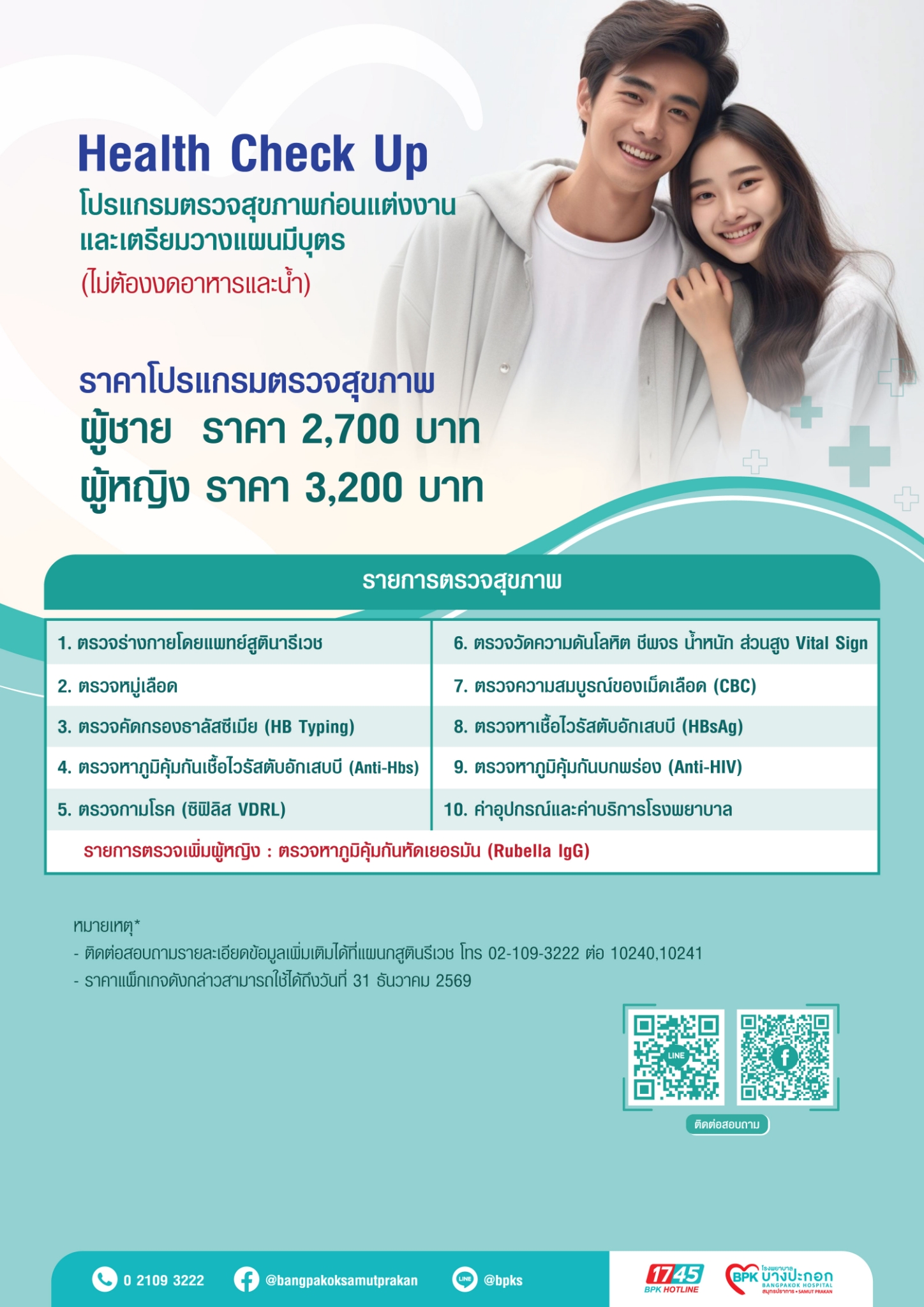 โปรแกรมตรวจสุขภาพก่อนแต่งงานและเตรียมวางแผนมีบุตร สำหรับผู้หญิง